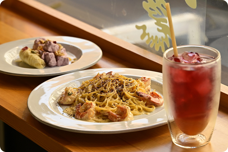 クリームソースのパスタ(ガーリックシュリンプ、ハイビスカス、クリーム、ブラックペッパー、チーズ) 2,400円