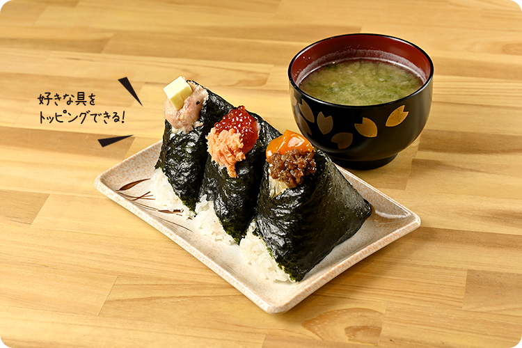 肉そぼろ+卵黄醬油漬け 470円 さけ+すじこ 520円 ねぎとろ+バター 470円 あおさ汁 220円
