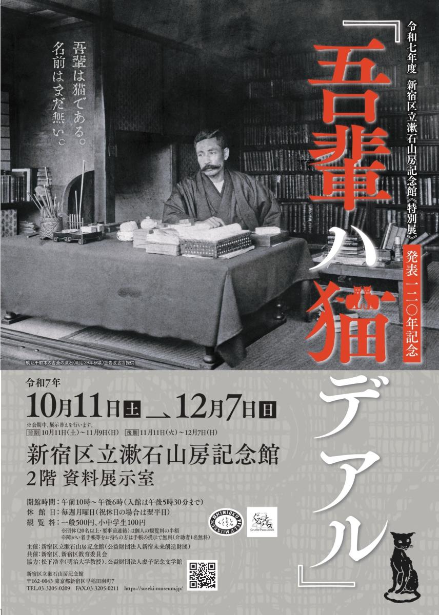 漱石山房記念館では、10月11日(土)から12月7日(日)まで、夏目漱石の作家デビュー作『吾輩ハ猫デアル』発表から120年を記念した特別展が開催されます。