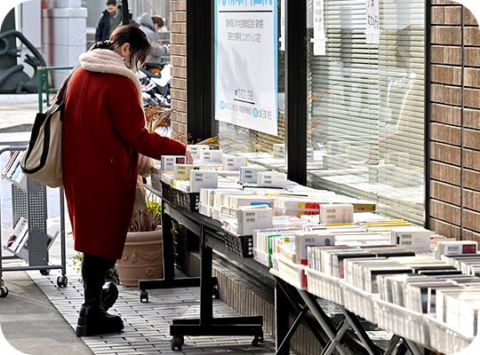 天気の良い日は300円均一の本が店頭に並ぶ