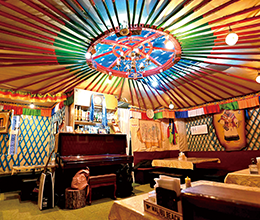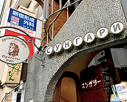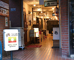 高田馬場駅から徒歩1分の雑居ビルにある、老舗のミャンマー料理店。ミャンマー北部を中心に暮らすシャン民族の食文化にふれられる、日本でも数少ない場所だ。1997(平成9)年の開業以来、シャン州出身者も多く訪れる。店内は、ミャンマー語が飛び交い、現地さながらの雰囲気。名物の「シャンカウスェ」は、もちもちとした米麺に、丸鶏のあっさりとしたスープが絡み、ナッツやパクチーがアクセントとなっている。スタッフのスティップさんは「シャンカウスェは、家族団らんや親しい人と囲む食卓に欠かせない料理」と話す。また、同店では昆虫食も提供しており、珍しい食体験もできる。同ビル4階には、系列店のミャンマー食材が買えるお店やカフェも。